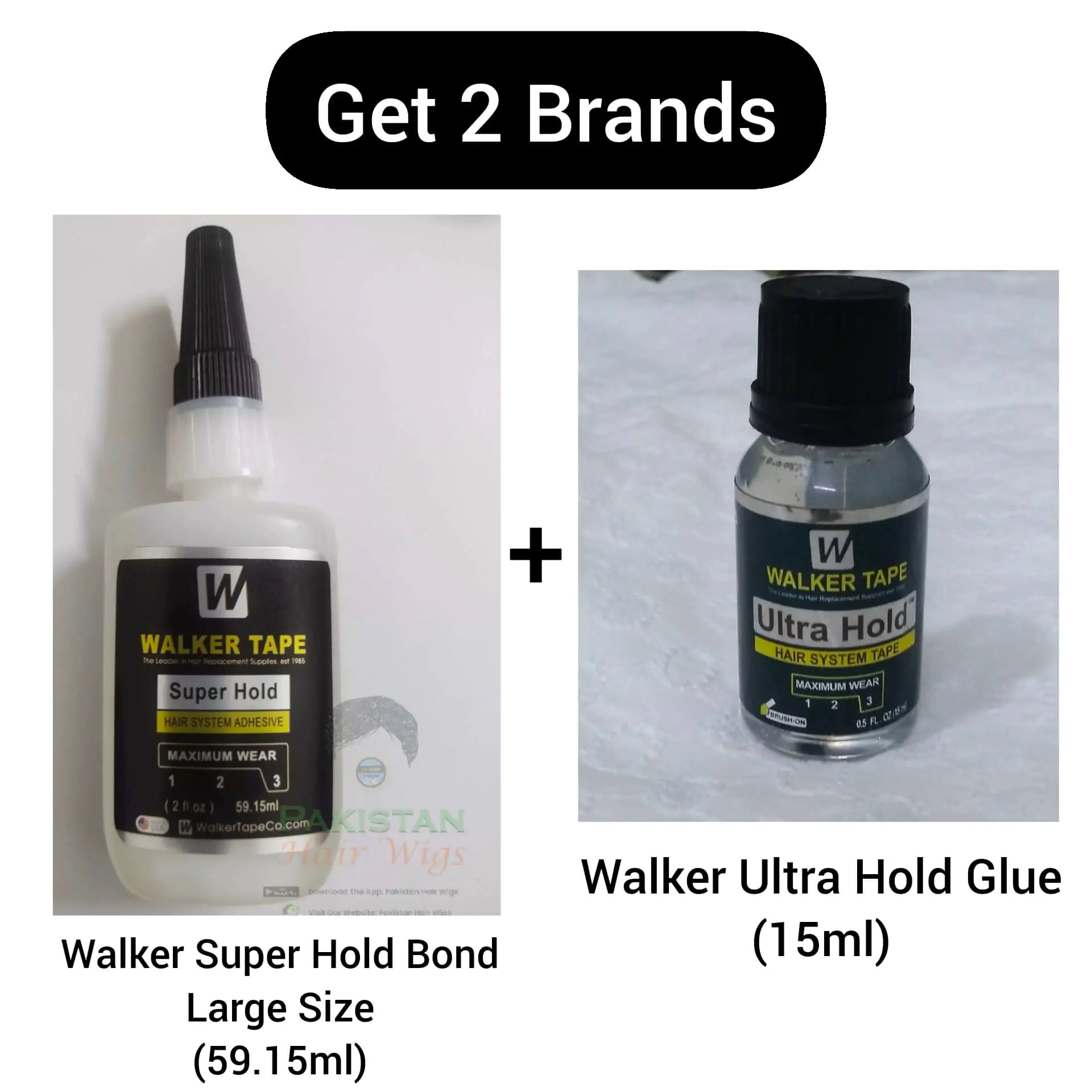 Bachat Pack: Walker Super Hold Bond 2oz (1 Bottle) + Walker Ultra Hold Glue 15ml (1 Bottle)