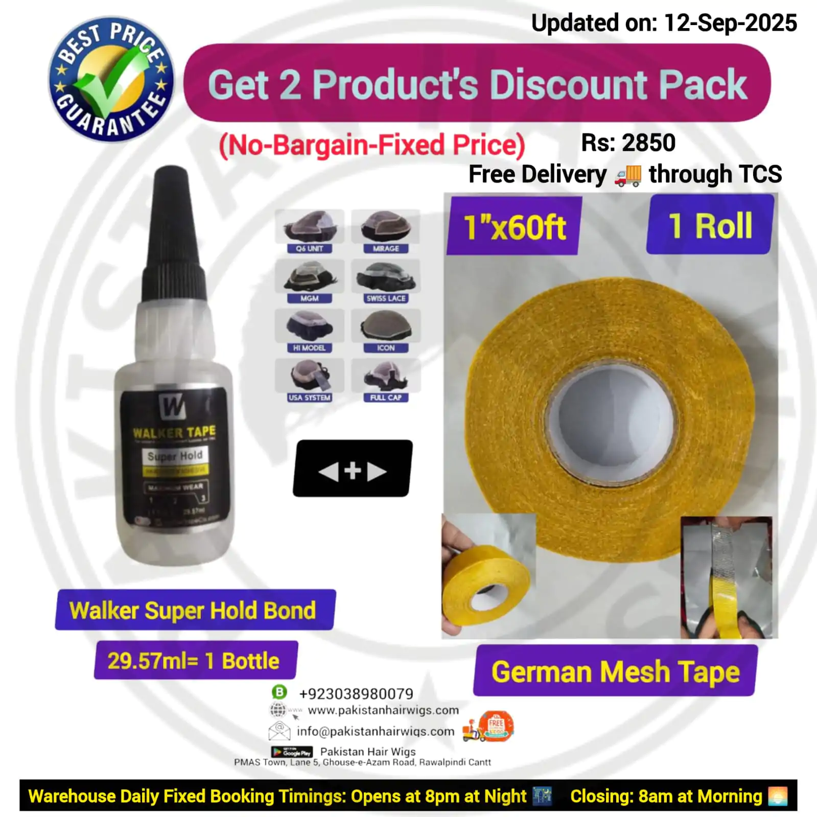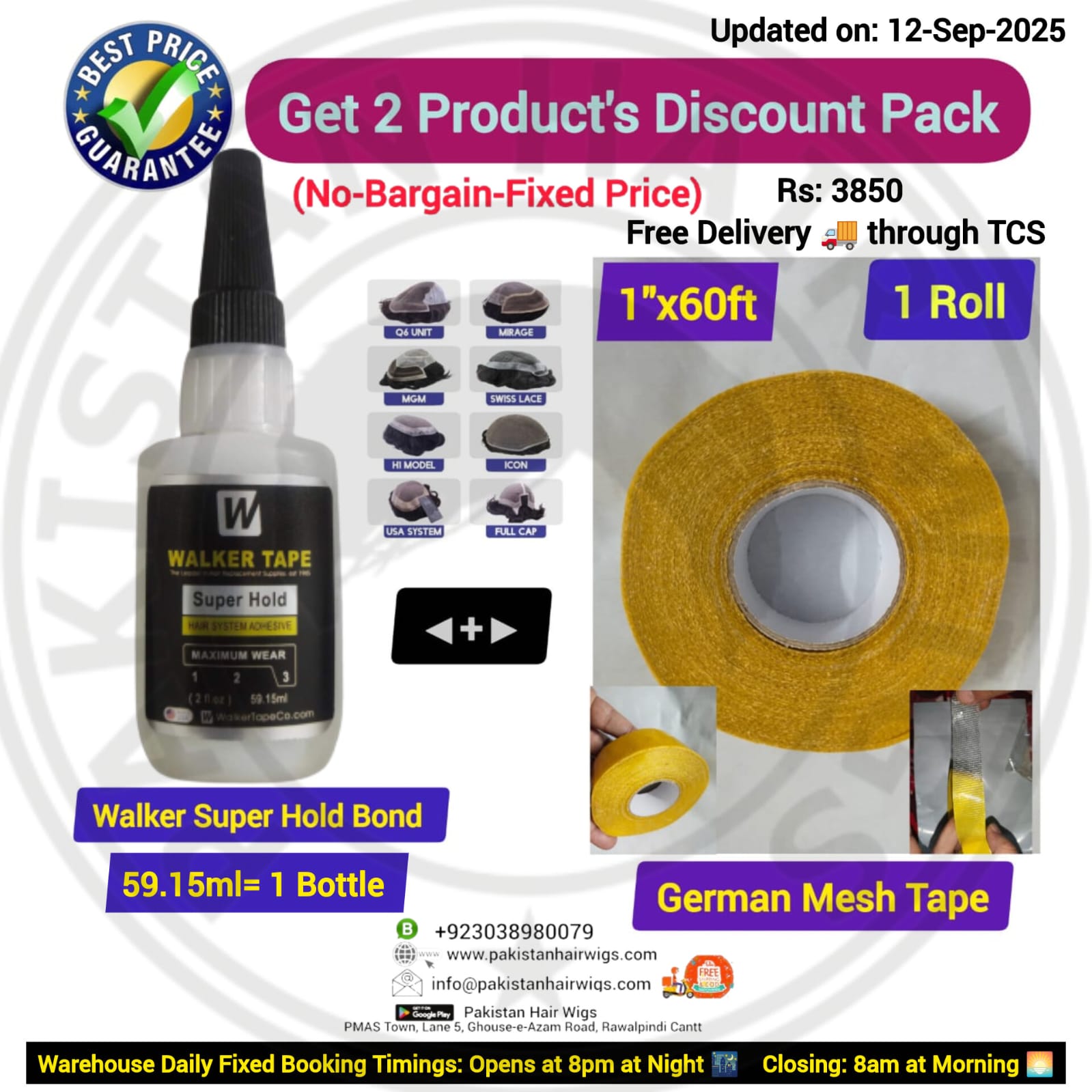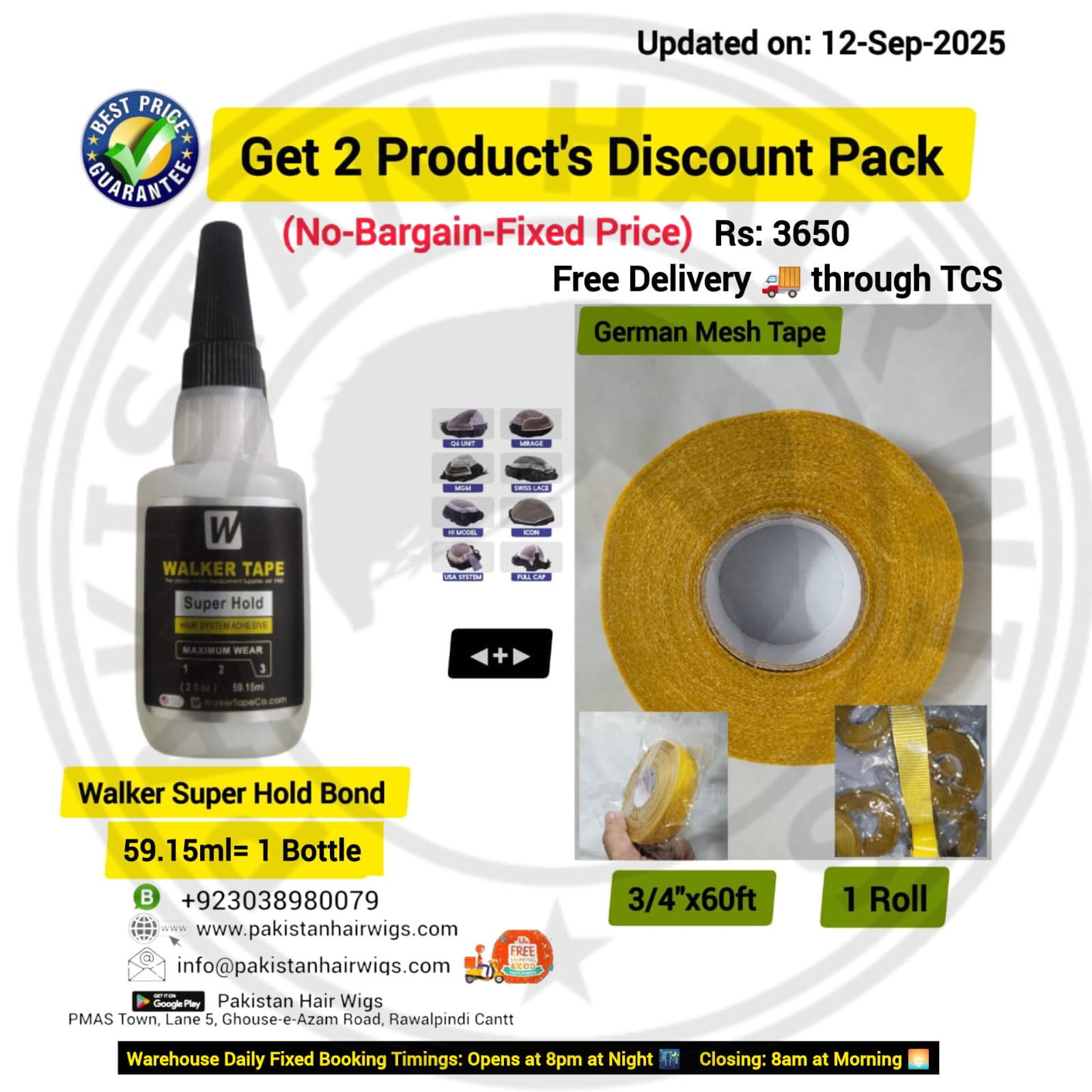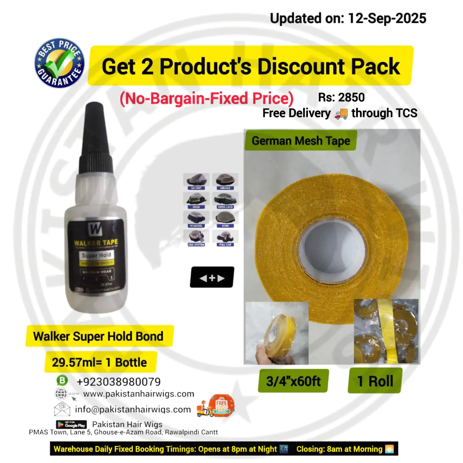 Pack of 2 Products, Walker Super Hold Wig Bond 59.15ml with German Mesh Hair Wig Tape 3/4″ Wide