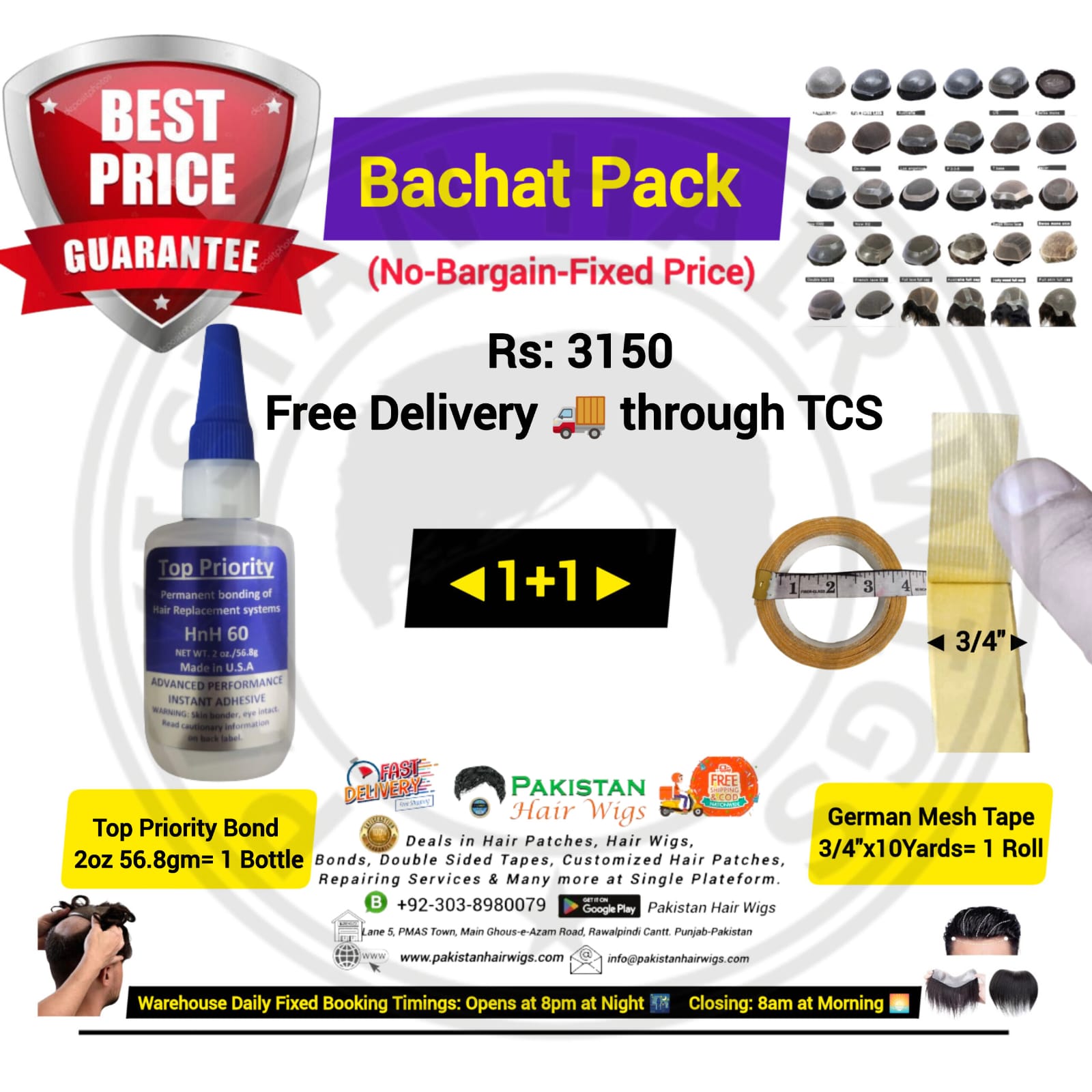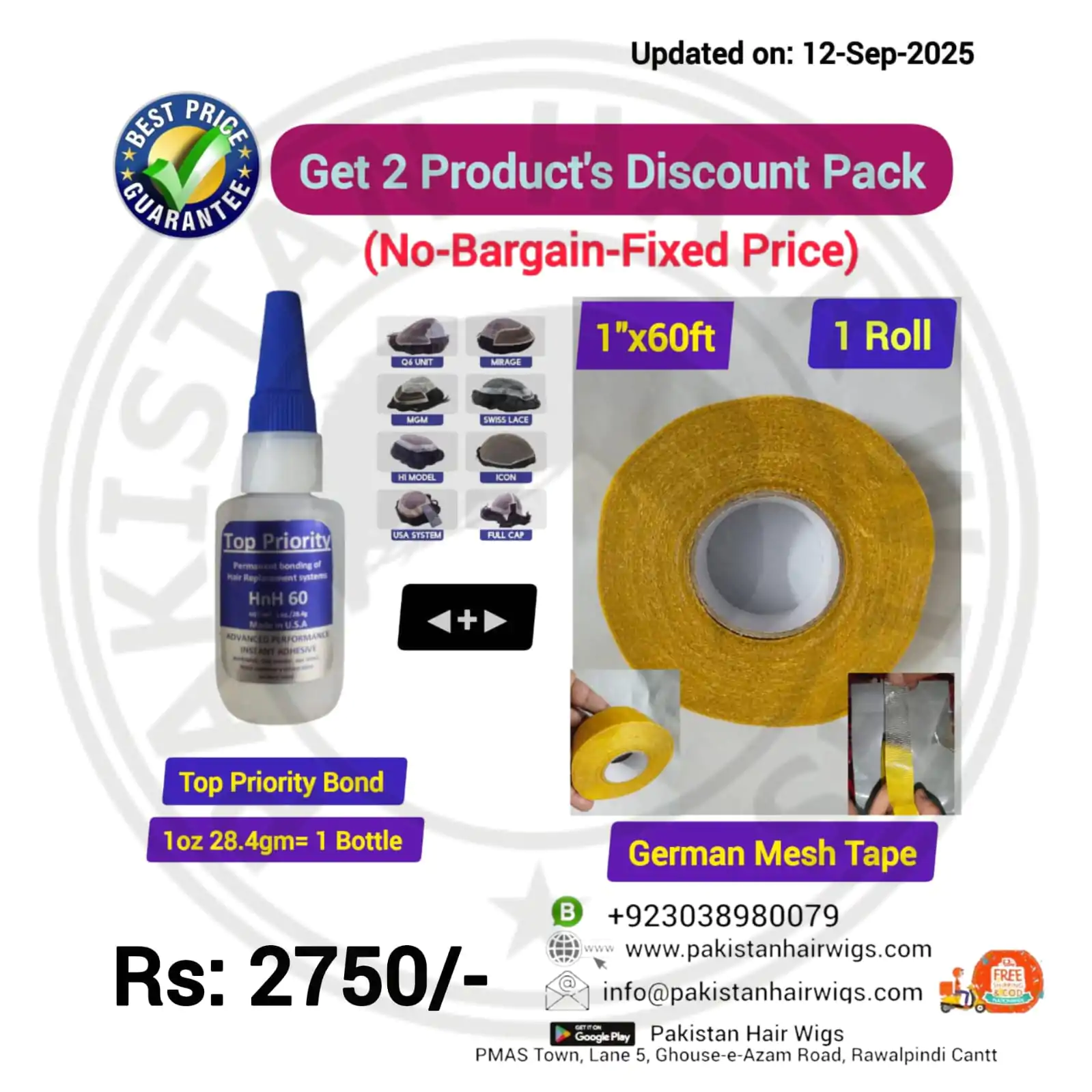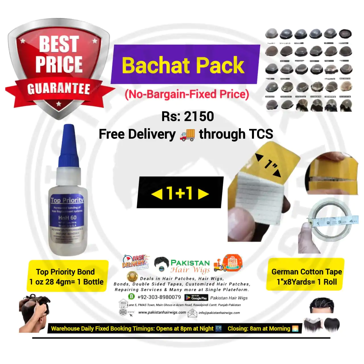 Pack of 2 Products, Top Priority Bond 56.8gm with German Mesh Hair Wig Tape 1″ Wide