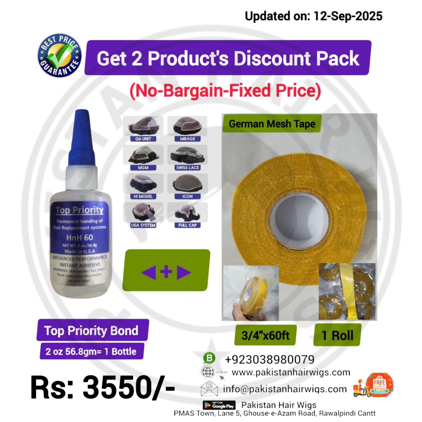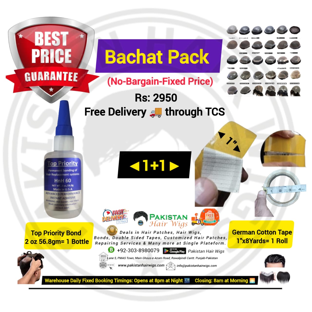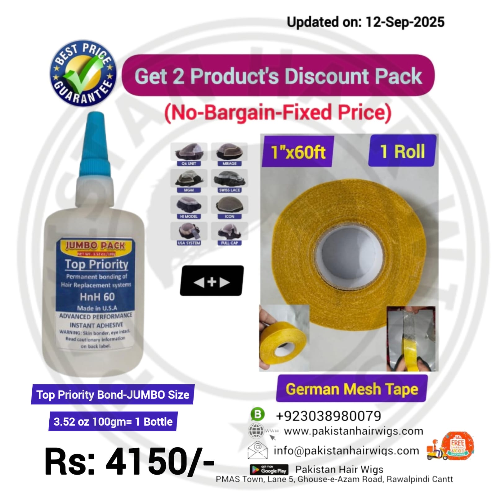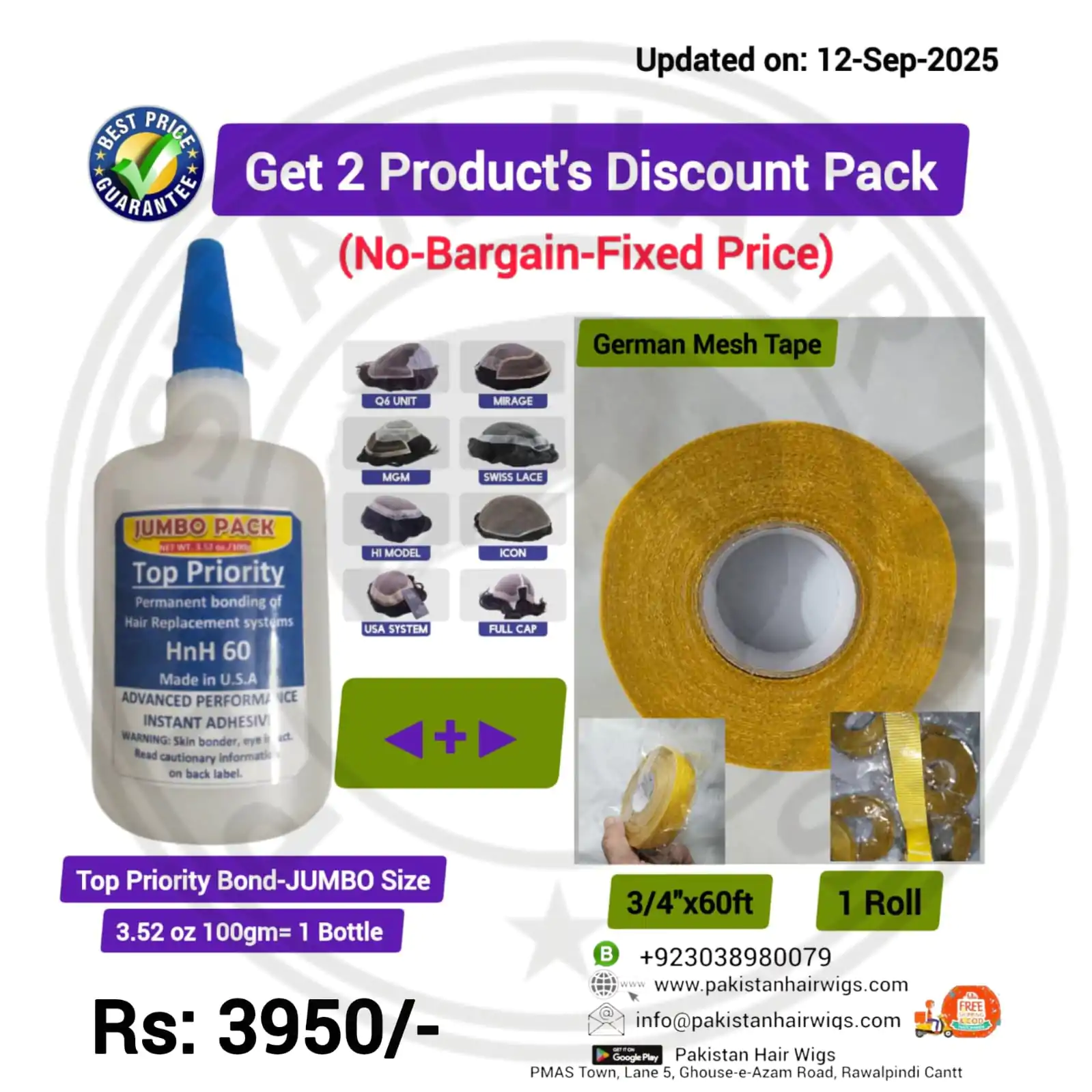 Pack of 2 Products, Top Priority Bond 56.8gm with German Mesh Hair Wig Tape 1″ Wide