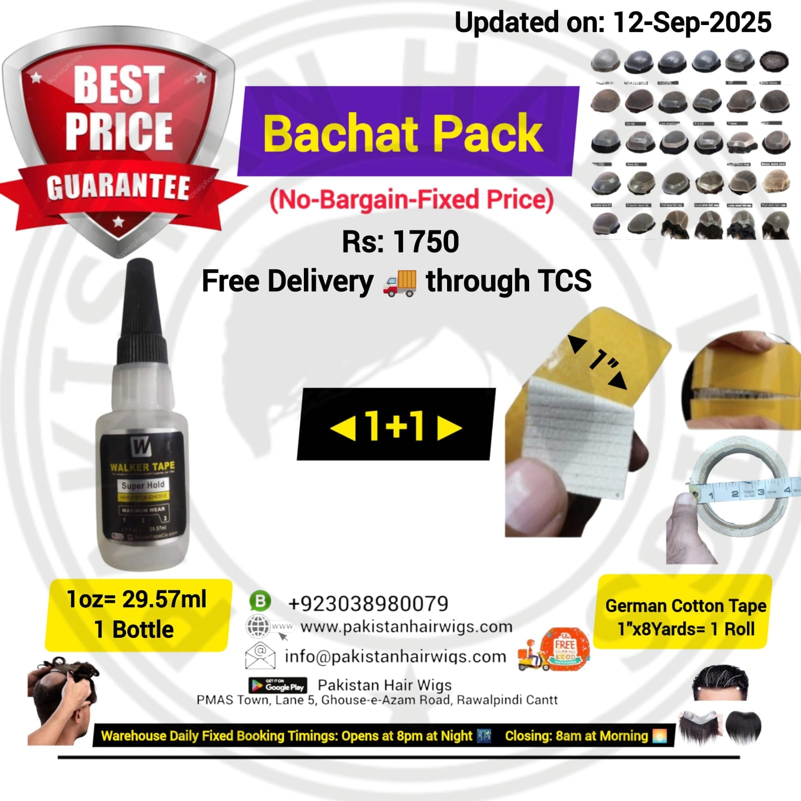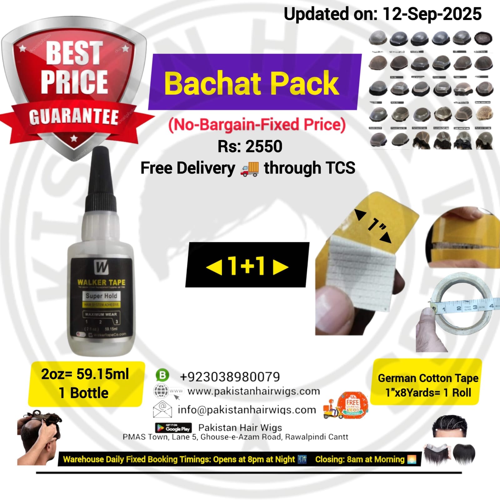 Pack of 2 Products, Walker Ultra Hold Wig Glue 15ml with German Cloth Type Hair Wig Tape 1″ Wide