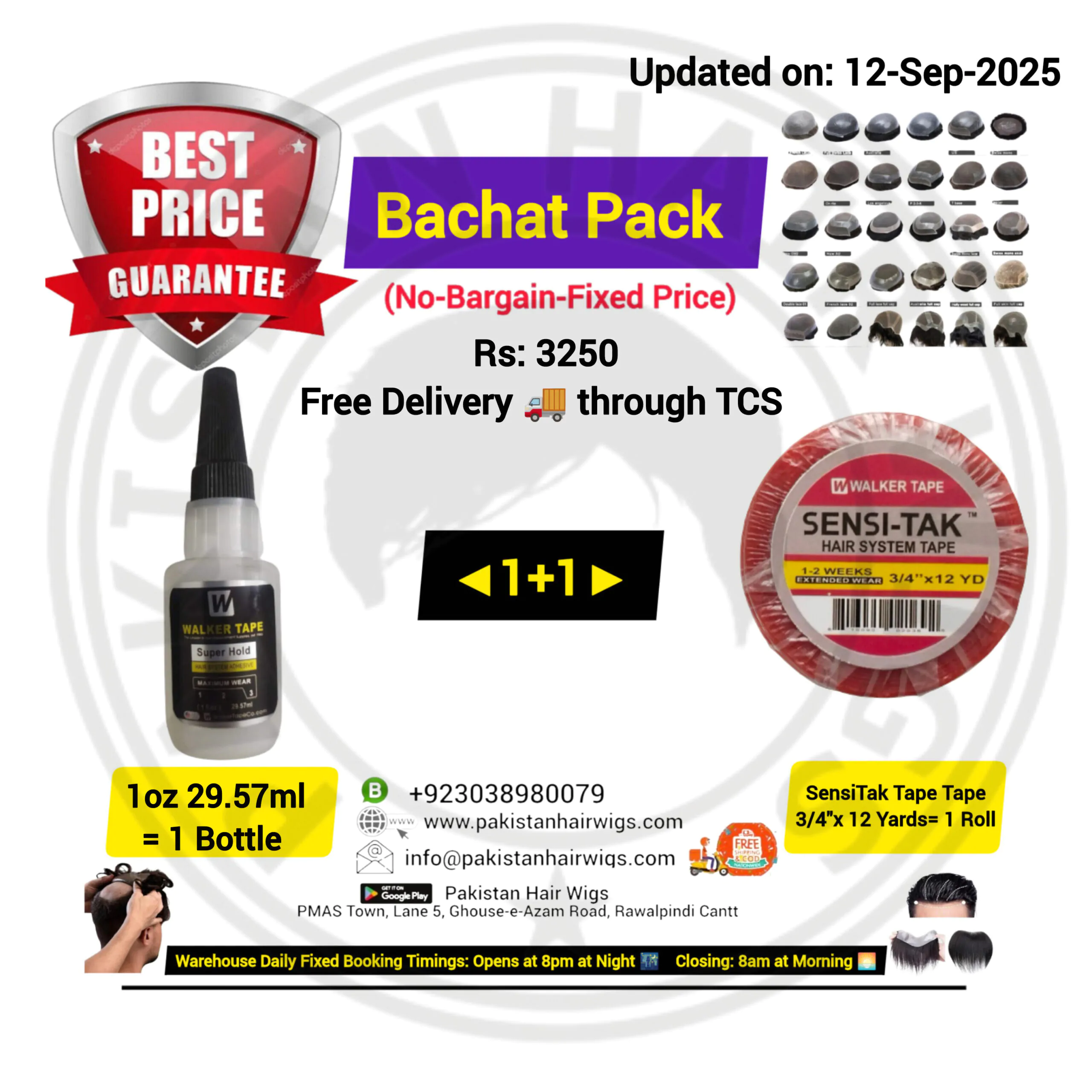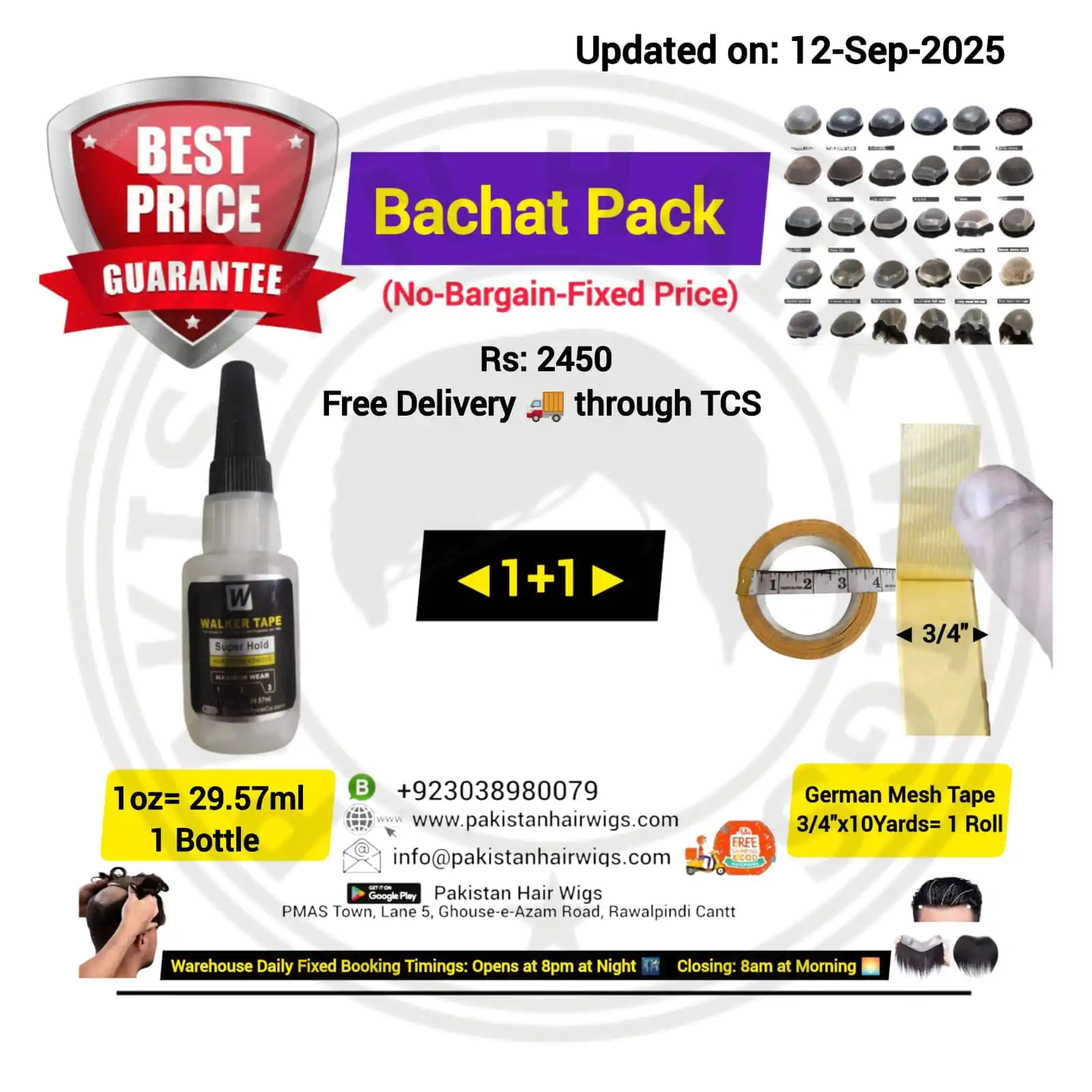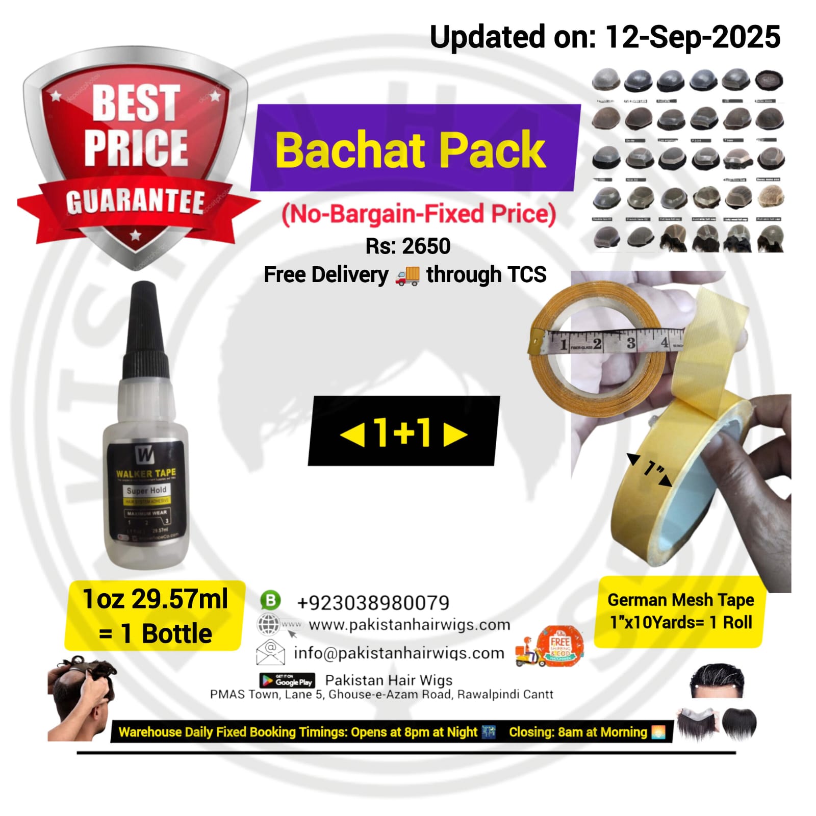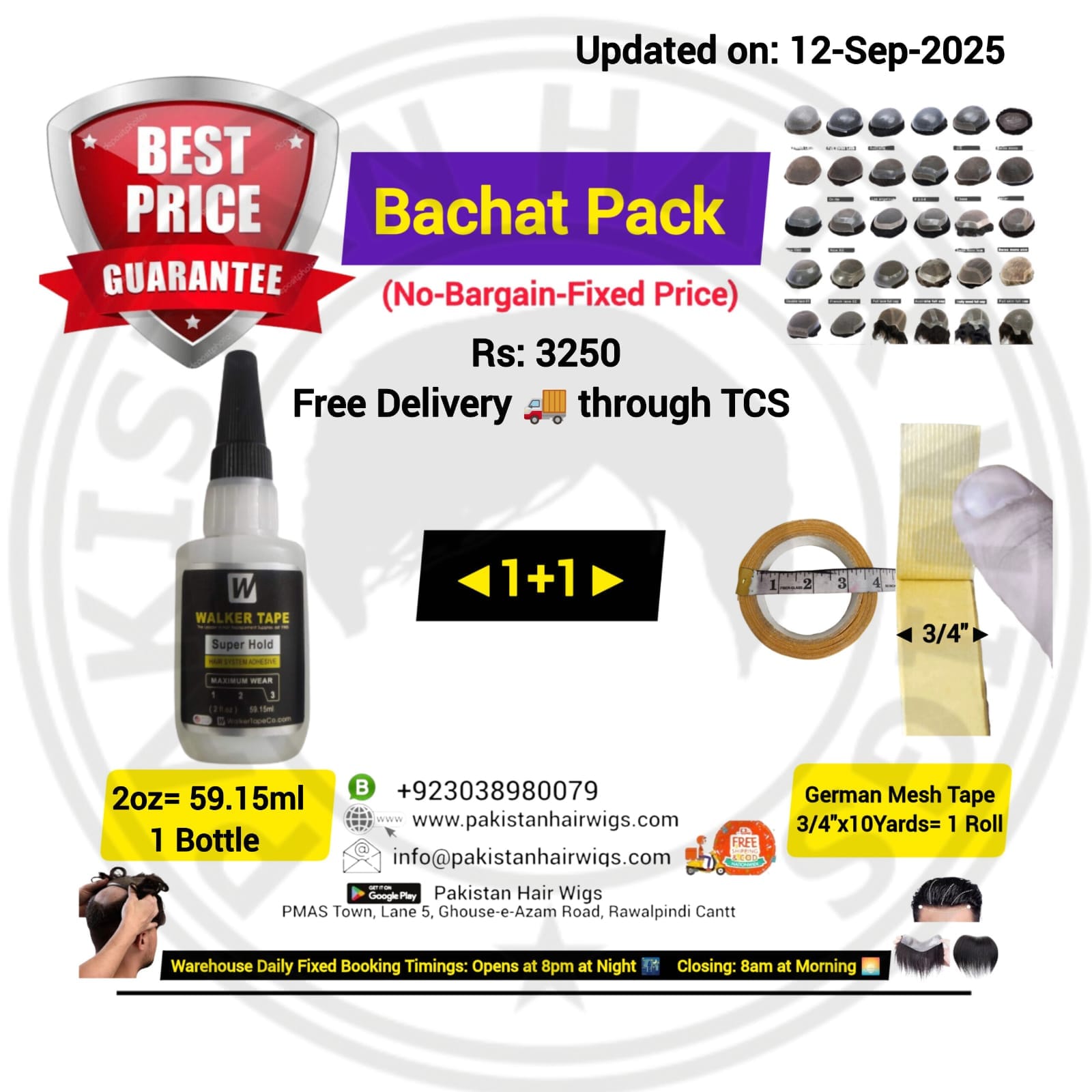 Pack of 2 Products, Walker Ultra Hold Wig Glue 15ml with German Mesh Hair Wig Tape 1″ Wide