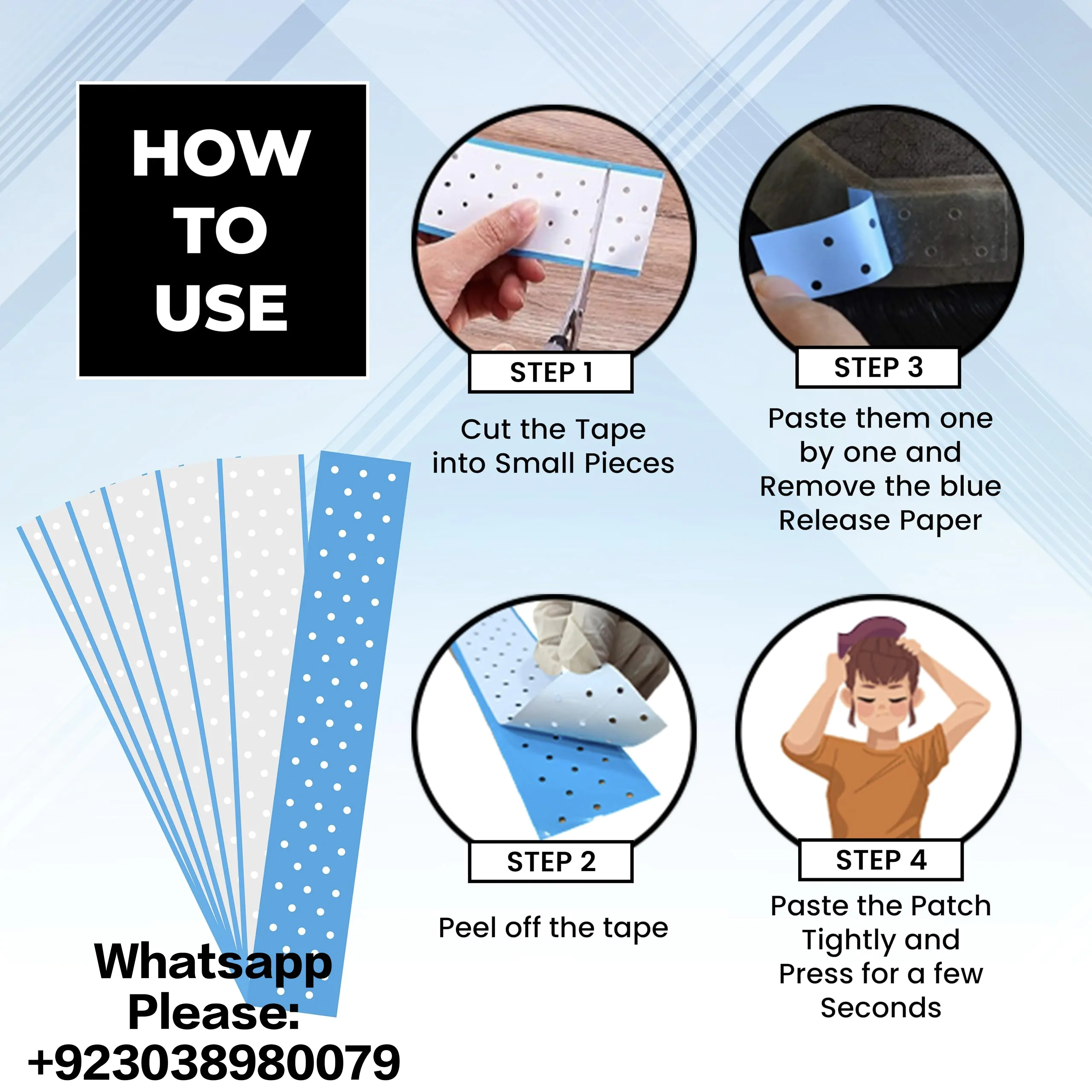 Place the tape piece where desired on the hair system. Repeat as needed.