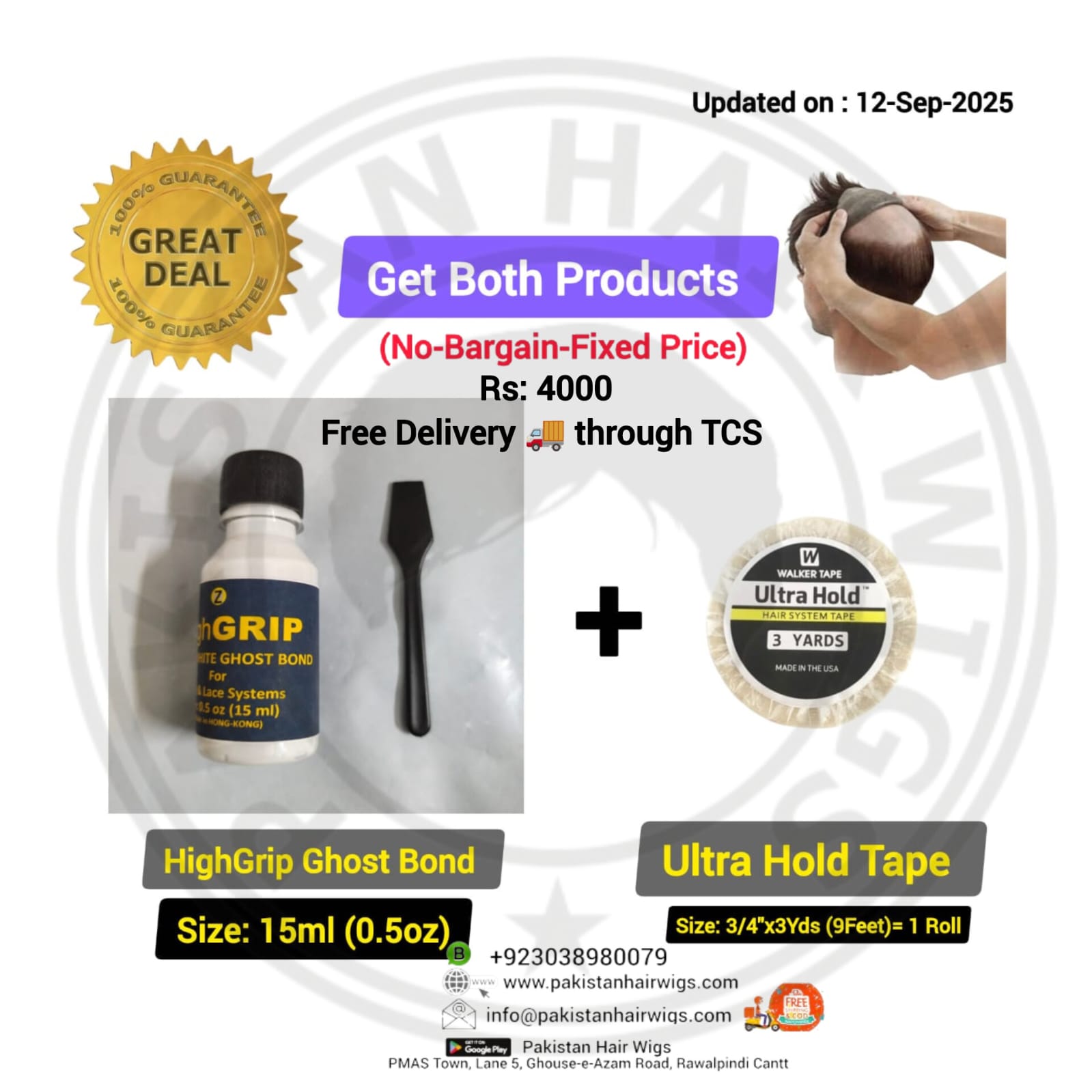 highGRIP Ghost Bond 15ml= 1 Bottle ,highGRIP Ghost Bond 15ml+German Cotton Tape ,highGRIP Ghost Bond 15ml+German Mesh Tape 3/4"x10Yards=1 ,highGRIP Ghost Bond 15ml+German Mesh Tape 1"x10Yards=1 ,highGRIP Ghost Bond 15ml+imported German Mesh Tape 3/4"x60ft=1 ,highGRIP Ghost Bond 15ml+imported German Mesh Tape 1"x60ft=1 ,highGRIP Ghost Bond 15ml+German Brown Tape 3/4"x3Yds=1 ,highGRIP Ghost Bond 15ml+SensiTak Tape 3/4"x3Yds=1 ,highGRIP Ghost Bond 15ml+SensiTak Tape 3/4"x12Yds=1 ,highGRIP Ghost Bond 15ml+NoShine Tape 3/4"x3Yds=1 ,highGRIP Ghost Bond 15ml+Lace Front Tape 3/4"x3Yds=1 ,highGRIP Ghost Bond 15ml+Ultra Hold Tape 3/4"x3Yds=1 ,highGRIP Ghost Bond 15ml+Ultra Hold Glue 15ml ,highGRIP Ghost Bond 15ml+Hair Shiner ,highGRIP Ghost Bond 15ml+NoShine Strips 36 Nos ,highGRIP Ghost Bond 15ml+Lace Front Strips 36 Nos ,highGRIP Ghost Bond 15ml+Ultra Hold Strips 36 Nos ,highGRIP Ghost Bond 15ml+SuperStick Strips 36 Nos ,highGRIP Ghost Bond 15ml+SensiTak Strips 36 Nos ,highGRIP Ghost Bond 15ml+German Brown Strips 36 Nos ,highGRIP Ghost Bond 15ml+Extenda Bond Strips 5Nos |