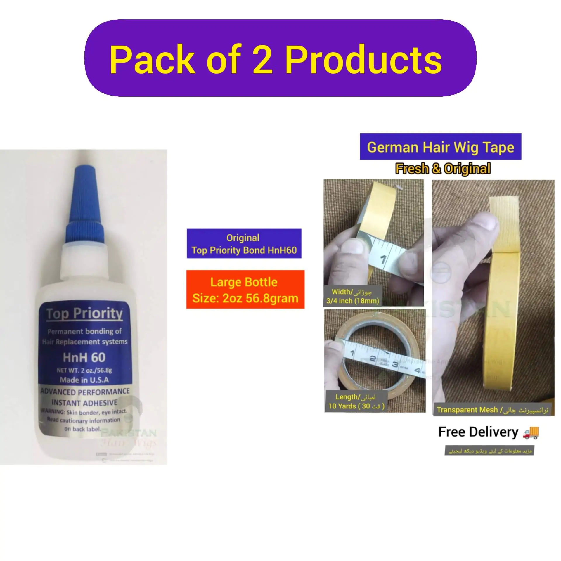 Pack of 2 Products, Top Priority Bond 56.8gm with German Mesh Hair Wig Tape 3/4″ Wide