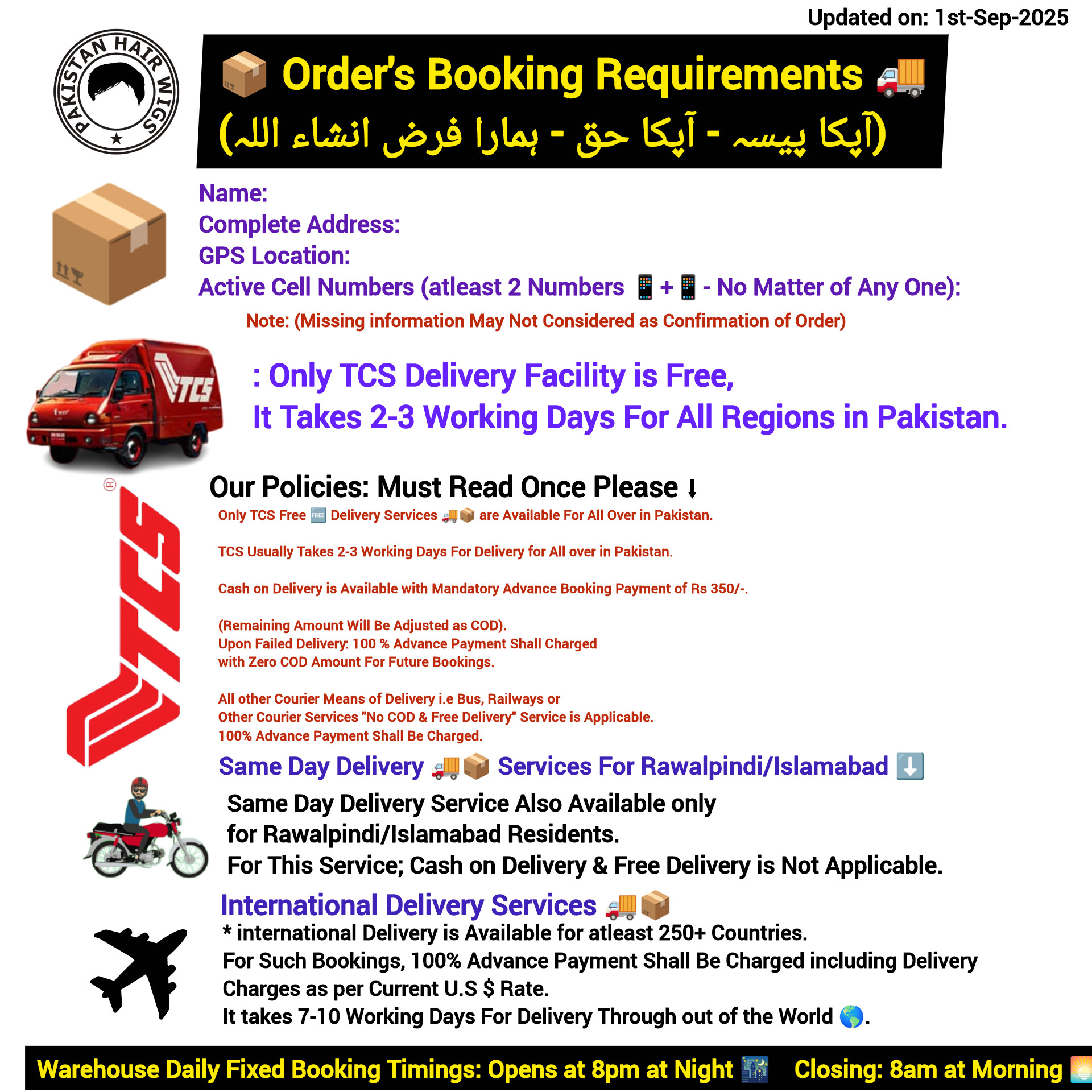 Complete Address+Postal Code(PC) + Cell Number 📱 Required.